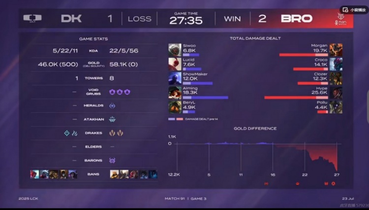 直播吧7月23日讯 2025年LCK第三赛段比赛今日开打!揭幕战是涅槃组的DK对阵BRO!