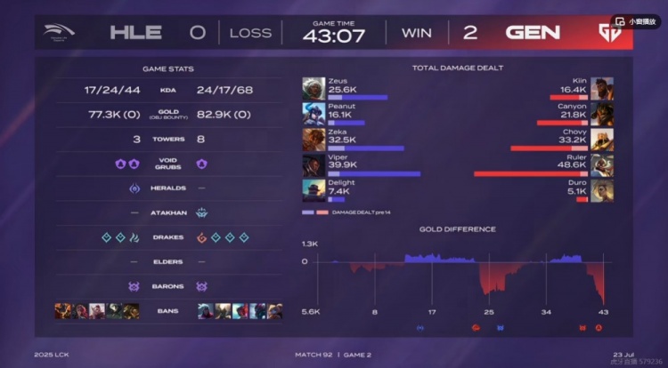 直播吧7月23日讯 2025年LCK第三赛段比赛今日开打!第二场是登峰组的GEN对阵HLE!