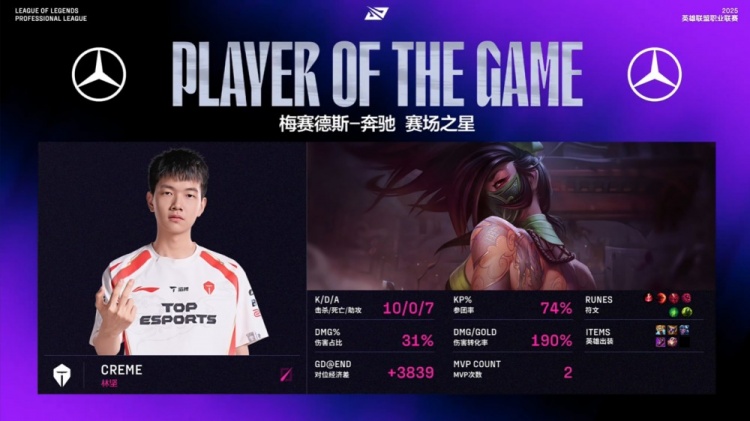 后期TES在小龙处先后打出优势,Creme阿卡丽击杀Care发条,Kanavi巨魔收下水龙魂并完成五杀,TES团灭FPX后拿下大龙。最终TES上高地强势推进,哥哥希维尔四杀收尾,TES推平FPX基地,赢得比赛胜利。