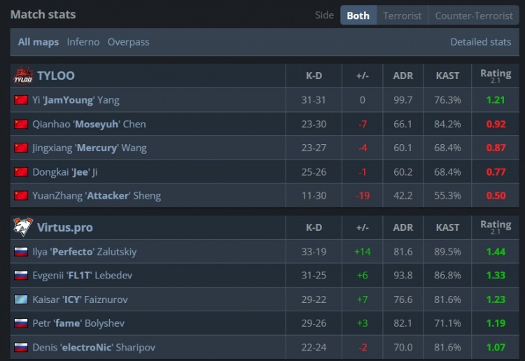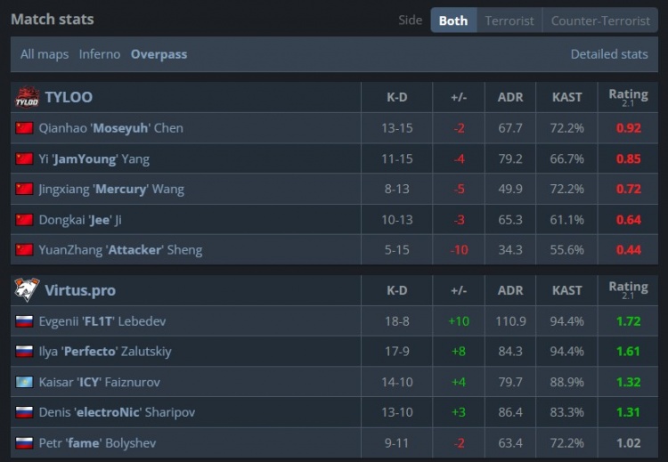 易边再战,手枪局ICY双枪顶住B长廊,Perfecto与电子哥联手双杀收割,次回合Tyloo强起未果,VP连拿3分,比分来到10-7。第11局ICY在A双杀单局三杀。再到长枪Tyloo再被B长廊被团灭,次回合Tyloo没钱送VP赛点,最终ICY与电子哥收割残局,VP以13-5战胜Tyloo。