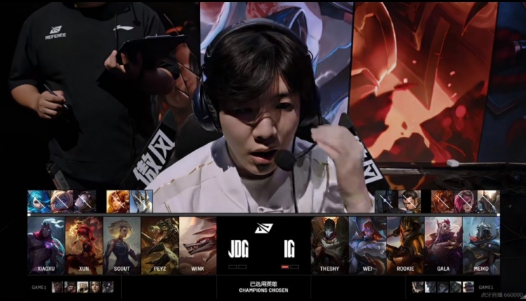 JDG:上单Xiaoxu、打野Xun、中单Scout、下路Peyz、辅助Wink