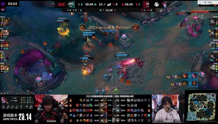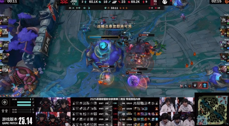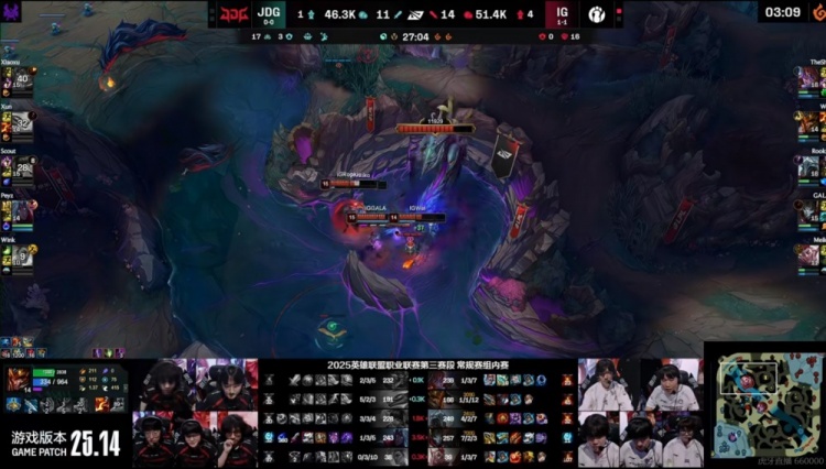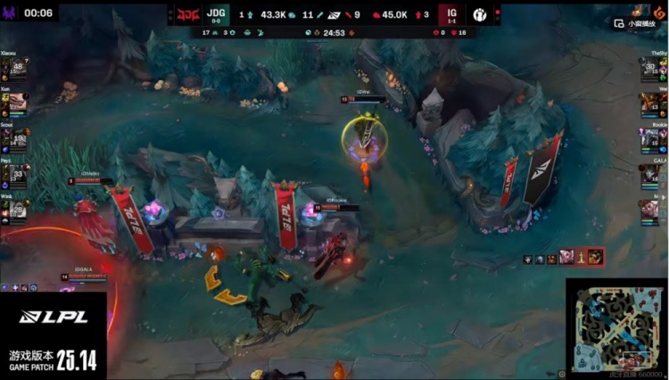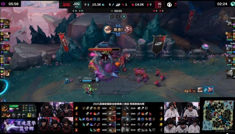 直播吧7月24日讯 2025年LPL第三赛段比赛今日继续,首场是登峰组的比赛,全新阵容的JDG将要对战iG!