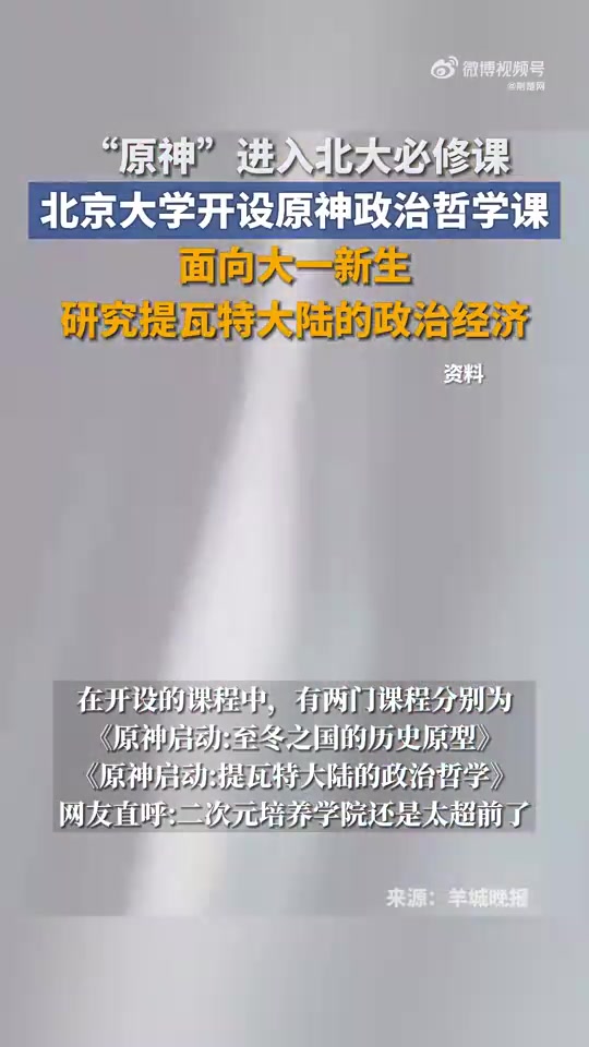 在开设的课程中,有两门课程分别为《原神启动:至冬之国的历史原型》《原神启动:提瓦特大陆的政治哲学》,所属方向为政治学。目前尚不清楚该课程的具体内容。