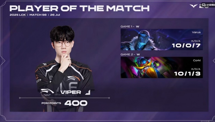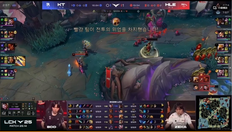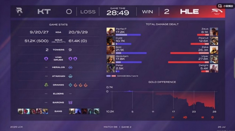 直播吧7月26日讯 2025年LCK第三赛段比赛今日继续,第二场是登峰组的HLE对阵KT!