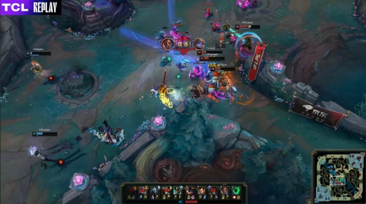 【14:28】iyy赵信下路绕后逮捕Meiko,sheer兰博吃掉人头,FPX经济领先2k。