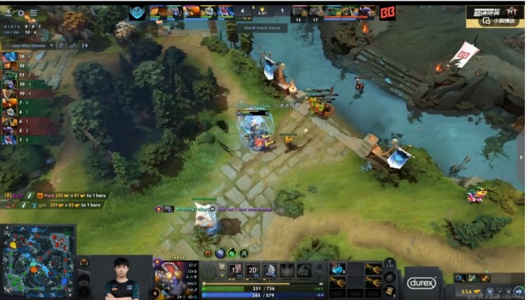 【3分钟】上路Pure大圣有点托大,结果被Bach凤凰贴身烧拉满了伤害,有莲花的TBD两人合力强杀掉了大圣!同时y队萨尔支援中路,配合NTS的TK反杀掉了gpk拉席克!TBD的0换2!