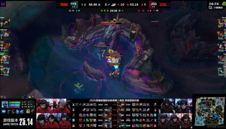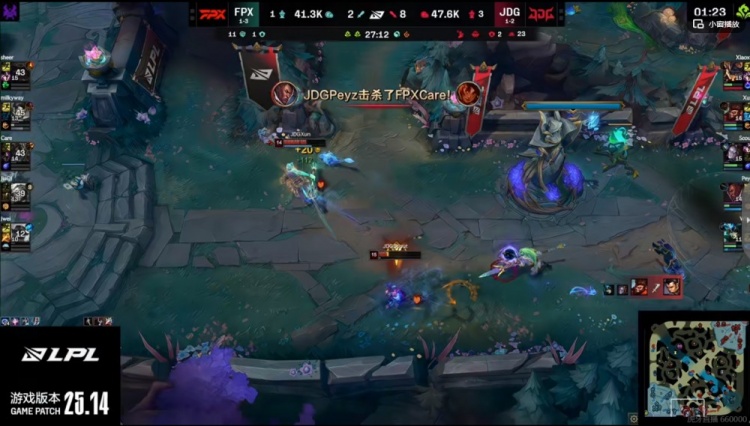 【15:38】FPX拿下峡谷先锋!JDG追击留住了Jwei布隆!再拆FPX的中一塔!
