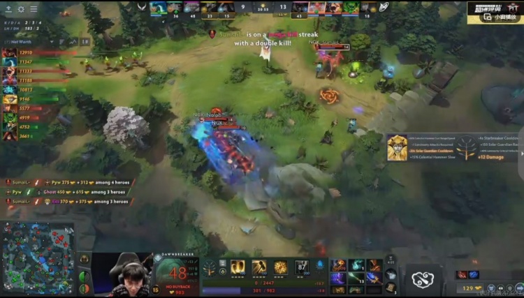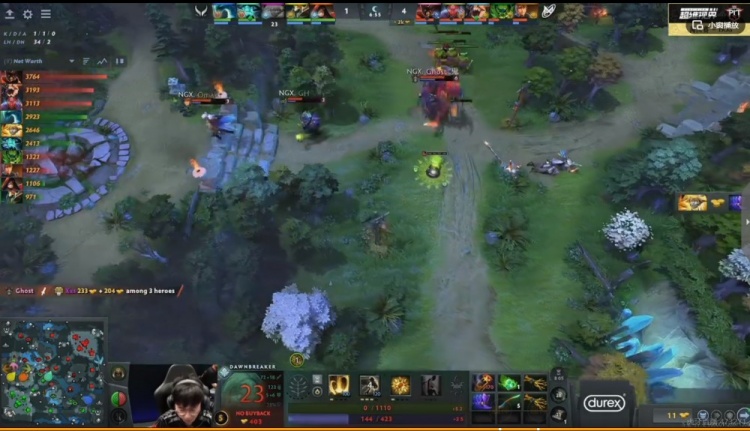 【48分钟】高地团No!ob獣想开,但是正面XG直接切入,锤妹大招跟进,Ghost末日开不出大就和SumaiL女王一起被秒了!Nigma交出双买活但是拿XG双大哥一点办法没有!Ame水人直接暴走杀死比赛!XG逐个击破再将买活女王击杀,Nigma敲出了GG!XG先拿一分!