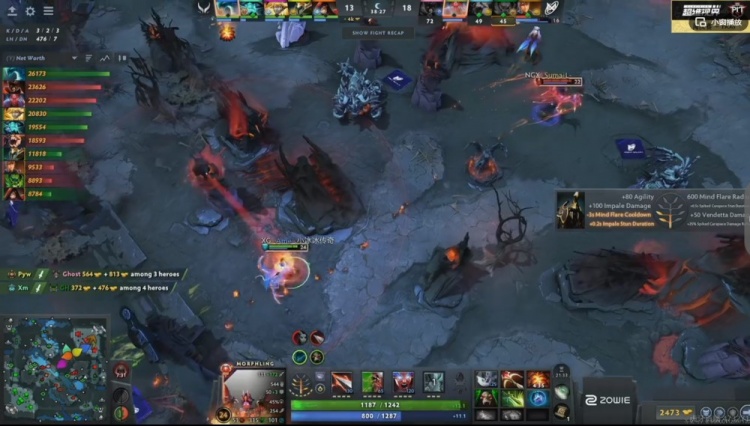【20分钟】Nigma拿下魔晶,然后集体坐门转下,Xm蓝猫吃控自己反手拉到了末日,但是有锤妹+术士大招伤害还是差了一点,被Ghost末日交出了大招!这波虽然XG强杀掉了大哥末日,但是还是被Nigma打了个2换4!双方经济差5K!