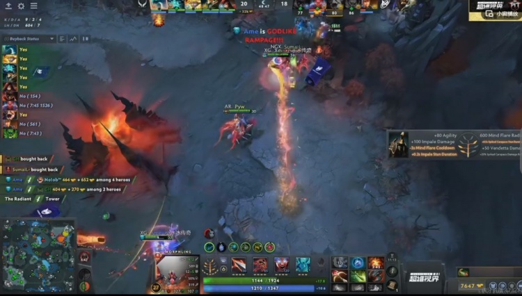 【6分钟】OmaR玛西先手越塔背回Xxs锤妹,Ghost末日给大将他强杀!随后Nigma拿下了天辉的7分钟经验符!