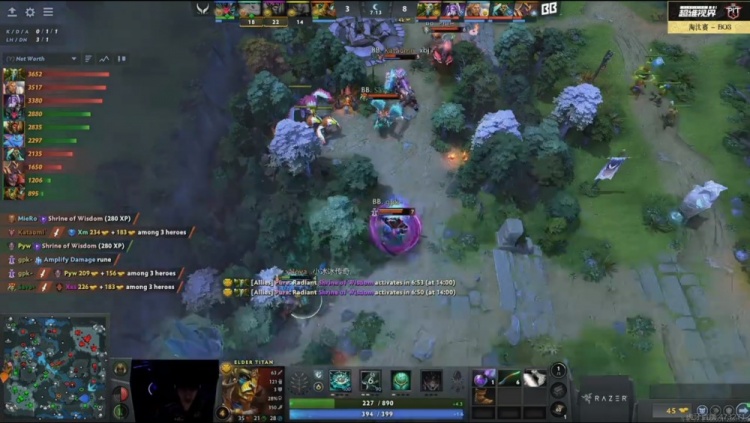 【13分钟】上路遭遇,XG想硬推塔结果BB五人齐反打先留Xxs兽王,随后Ame的TB想换血直接吃了个MieRo全能的魔免没啥办法!BB打出0换2之后又在上路二塔前逮捕一次Ame的TB!让他二连死!经济差来到9K了!