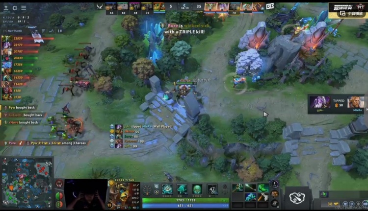 【27分钟】BB拿下二代肉山,XG抱团想逼下路高地,结果BB五人回防直接强杀掉了Ame的TB+Pyw莱恩!