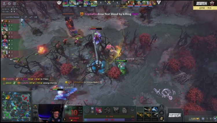 【1分钟】刚上线,Bach痛苦女王带双辅助冲塔强动Crystallis大圣,大圣塔下反打先拿一血。