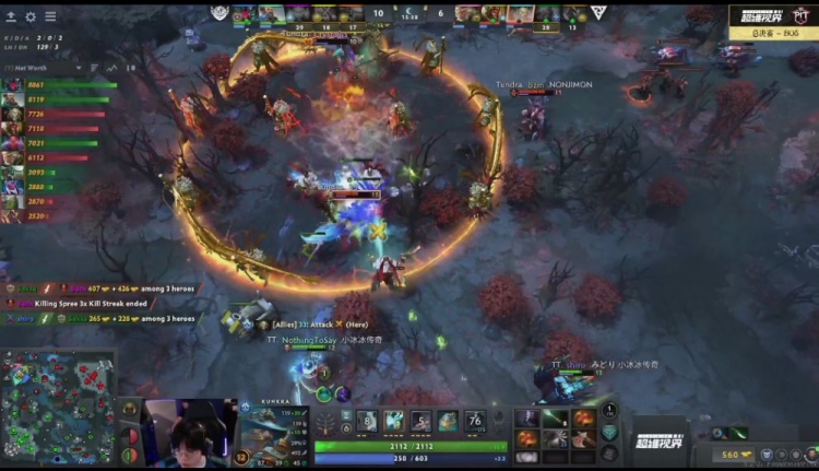 【36分钟】Tidebound控下肉山后,带盾下路上高,Tundra集火shiro恐怖利刃,关键时候,NTS船长水走了接控制的Saksa小小,恐怖利刃成功换血反打,将Tundra在高地上打买活死,破掉下路高地直接基地,Tundra无力阻拦打出GG。