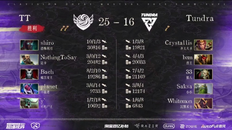 夜魇Tundra:Crystallis大圣、Whitemon沉默术士、Saksa小小、33狼人、bzm兽王。