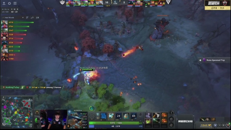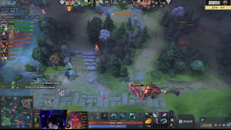 第四局Tidebound线上优势打出了3路优,更一度经济领先7K,但推塔不顺利,在针对33斧王后,被打了一波反击成功,走地斧王终结了风行者,之后Tidebound正面打不过成型的Tundra三核,集火击杀一个斧王,就处理不了亚巴顿和卡尔,最后Tidebound被追上高地打核心阵亡打出GG。