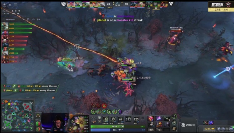 【5分钟】y海民和planet风行支援中路,滚雪球控一下接NTS船长水输出击杀bzm卡尔。Tundra打了一波海民不在,33斧王吼接bzm卡尔天火击杀shiro痛苦女王。