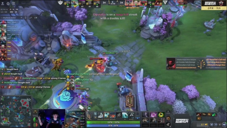 【29分钟】双方下路大战,shiro痛苦女王跳上去被33斧王吼住击杀,NTS船长水船没能打出击杀伤害,planet风行者又一次被推推33斧王追着打,Tidebound被打一波四人阵亡,船长交买活杀Crystallis亚巴顿,但正面Tidebound已经打不过Tundra,经济被逆转。