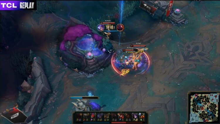【3:40】下路2v2,双方辅助互换,双方AD均击杀对方辅助,Wei潘森入侵AL野区吃掉AL蛤蟆。