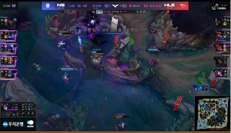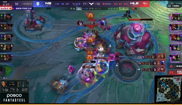 第二局HLE这边Peanut状态全无,开局连续两次被抓之后野区被GIDEON梦魇刷爆,然后先锋团啥都没干直接白给!NS先锋团一波2换4拿下局面和经济的优势!