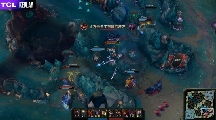 【16:25】haichao安妮上路吃线被1jiang配合Baiye卡莎飞脸融化,UP两人推掉LNG上路一塔,LNG两人推掉UP下路一塔,LNG经济领先1k。
