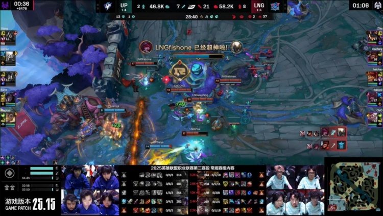 中期UP两度逮捕击杀haichao安妮得手,xiaofang拿下厄塔汗。LNG依旧通过换塔稳住局势,避免被进一步滚大雪球。