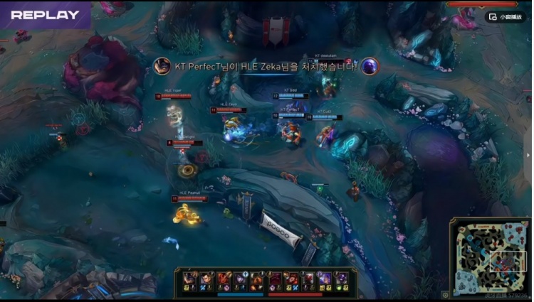 【11:30】KT拿下第二条小龙!双方第一波打了个辅助互换,结果Zeus奥恩传送门想追自己落单被强开,还空了个奥恩大!HLE想打但是正面人数不足,反而是Peanut猴子吃了虚弱先倒,结果被KT打了个1换3!