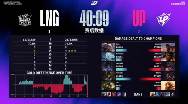 直播吧8月8日讯 2025LPL第三赛段常规赛组内赛继续进行,最终UP让一追二赢下LNG拿到比赛胜利。