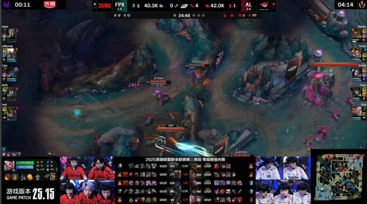 直播吧8月8日讯 2025LPL第三赛段常规赛组内赛继续进行,今日登峰组由AL对阵FPX!