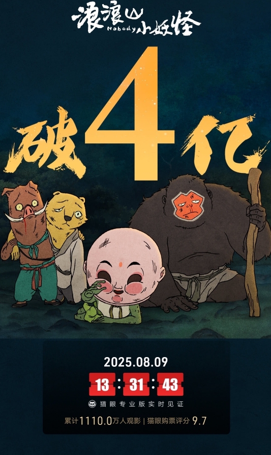 直播吧8月9日讯 《中国奇谭》首部动画电影《浪浪山的小妖怪》累计票房破4亿。