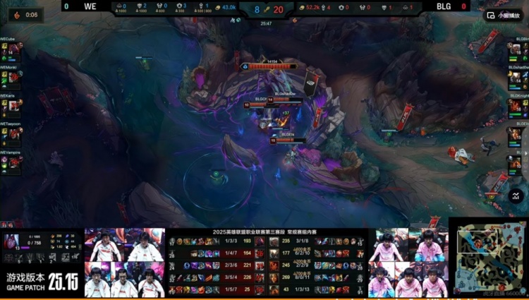 直播吧8月9日讯 2025年LPL第三赛段继续进行中,今天是三场登峰组的比赛!首场比赛是WE对阵BLG!