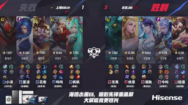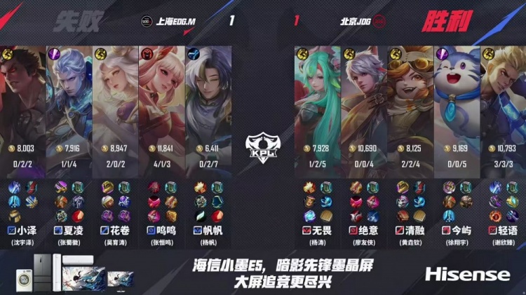 第一局:北京JDG 0-1 上海EDG.M