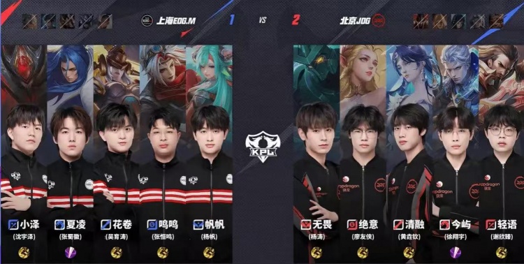 直播吧8月9日讯 2025KPL夏季赛常规赛第三轮本场比赛是由上海EDG.M对阵到北京JDG!第一局:EDG野区防守反击鏖战20分钟战胜JDG拿下首局!第二局:EDG前期打出节奏但是后期团战被JDG拉扯,JDG凭借上野发挥扳平比分!第三局:JDG司空震打赢关键龙团,随后JDG凭借优势一路碾压拿下胜利!第四局:JDG前期凭借海月的强势频繁进攻打出优势,中期JDG稳住优势直接平推!