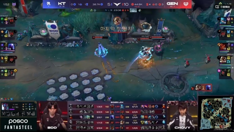 直播吧8月10日讯 2025年LCK第三赛段比赛今日继续,今天的首场比赛是登峰组的GEN对阵KT!