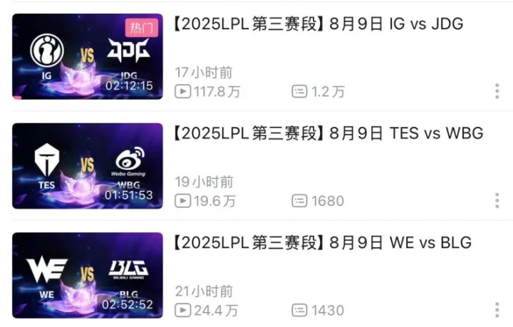 >iG才是顶流!昨日三场LPL比赛,iGvsJDG的播放量是前两场总播放量的两倍多!