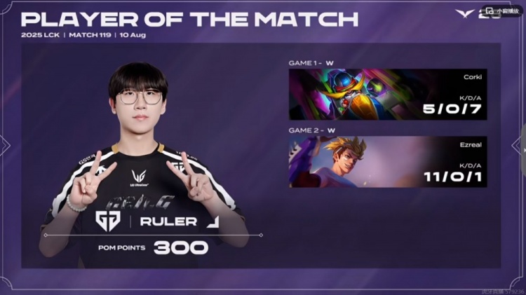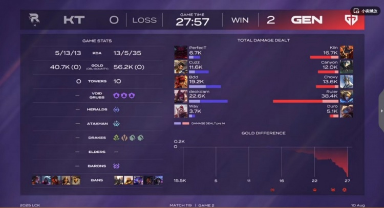 直播吧8月10日讯 2025年LCK第三赛段比赛今日继续,今天的首场比赛是登峰组的GEN对阵KT!