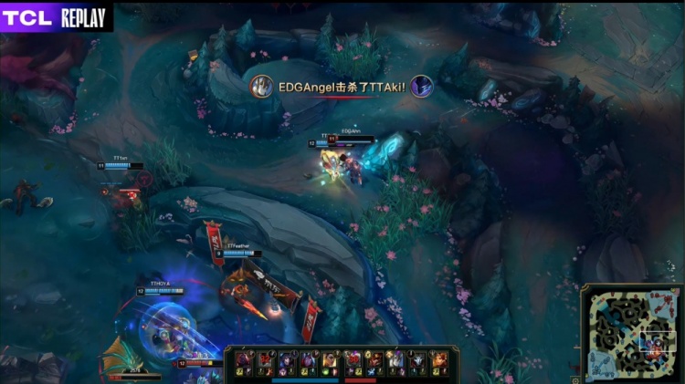 后期,Ahn烬关键时刻狙杀Aki梦魇,Zdz安蓓萨游龙,SeTab狐狸与1xn韦鲁斯被融化后,EDG控下大龙中路强行一波再打出0换4,推平TT基地拿到比赛胜利。
