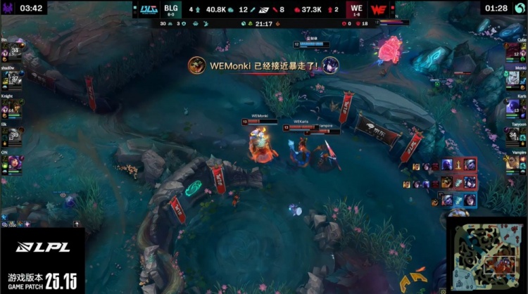 直播吧8月10日讯 2025LPL第三赛段常规赛组内赛,今日登峰组比赛由BLG对阵WE!