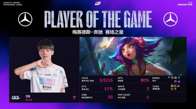 后期knight蛇女迷路被抓,Elk也被带走,WE回头拿到大龙扳平经济,但BLG控下水龙魂重新掌握优势。最终,BLG轻松吃掉大龙,Monki肥肥佛耶戈毫无作为,BLG中路推进破掉WE中路水晶,高地团战一波团灭WE,轻松推平WE基地拿到比赛胜利。