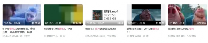 然而对于原片2小时半左右的哪吒,目前的超高压缩版本基本告别正常观看,除了大号色块超低分辨率外,更是出现了100S一帧的超低刷,一堆技术宅纷纷加入战局,不为别的,就为挑战极限,看谁能把这部电影压得更小。