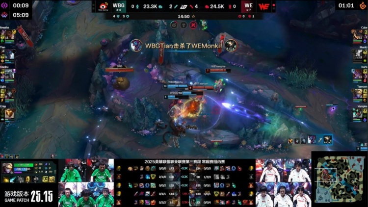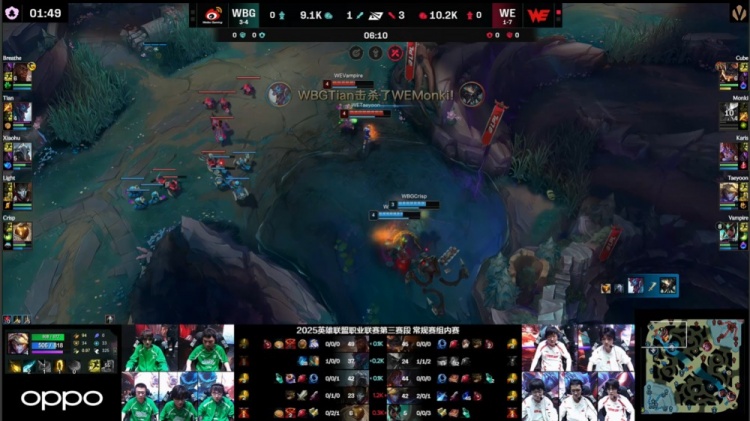 【25:10】WBG中路推进拔掉WE二塔,经济领先5k。