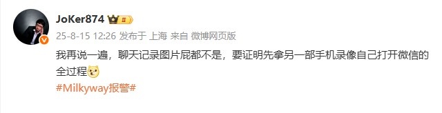 Milkyway在深夜发文表示已经向公安机关报案就追造谣者,同时那位放出聊天记录的爆料人已经销号跑路。