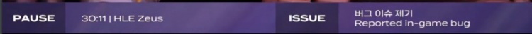 【29:47】T1大龙逼团,Zeka金身结束被Faker大招击杀,T1正面团战不断拉扯HLE,宙斯贾克斯金身结束又被Keria巴德金住,Delight与小花生被杀,T1打出1换4,比赛此时暂停,理由为宙斯选手反映了一个游戏内的BUG。
