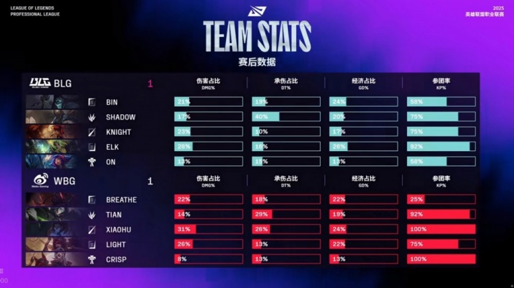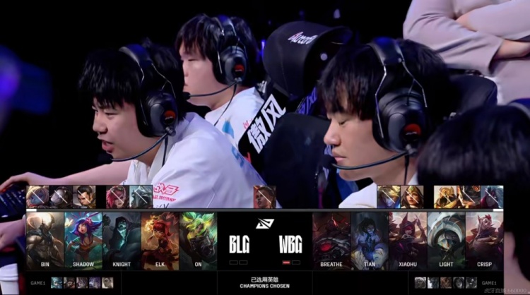 WBG:上单Breathe、打野Tian、中单Xiaohu、下路Light、辅助Crisp