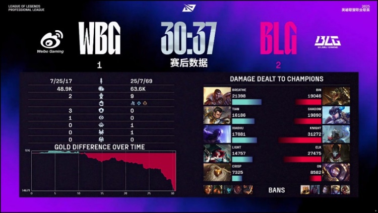 第二局:🎮这么多反转!决胜团Light霞撞墙白给 BLG一波团灭WBG扳平比分
