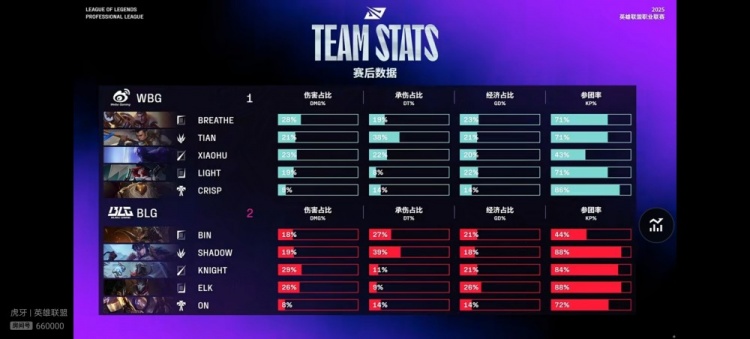 WBG:上单Breathe、打野Tian、中单Xiaohu、下路Light、辅助Crisp