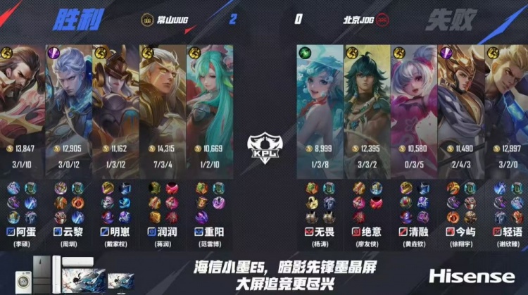 直播吧8月15日讯 2025KPL夏季赛常规赛第三轮本场比赛是由北京JDG对阵到常山UUG!第一局:JDG前期压制UUG但是UUG凭借鲁班父子体系后期发力成功拿下首局!第二局:JDG前期再次打出节奏但是UUG继续拖延,后期后羿大招开团团战输出拉满成功帮助UUG先拿赛点!第三局:UUG前期打赢团战奠定优势,后期UUG通过制造掉点拿下比赛胜利!