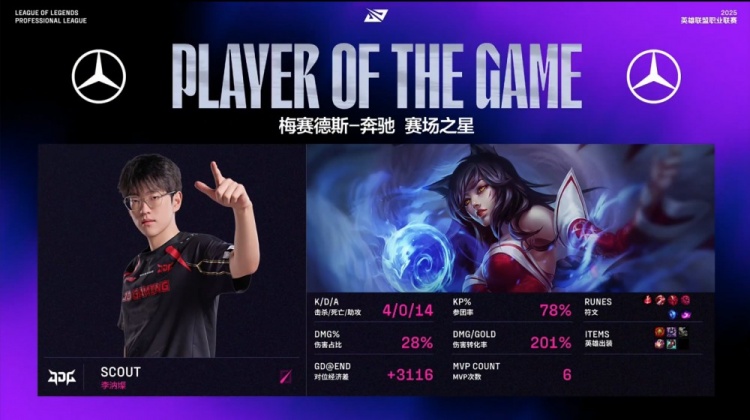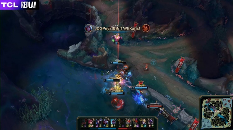 后期JDG下路推进,xiaoxu剑魔与Scout狐狸不断击杀WE前排,随后JDG凭借炼金龙魂与大龙的增益进一步扩大优势。最终JDG轻松融化WE,一波推平WE基地扳回一城。