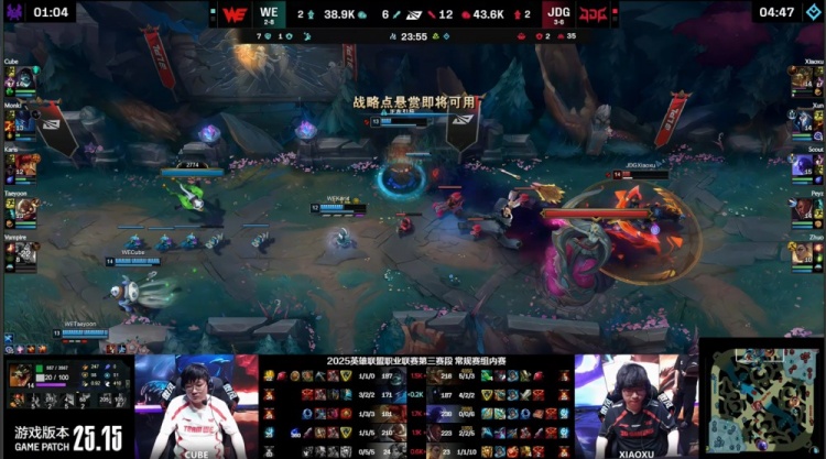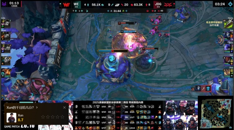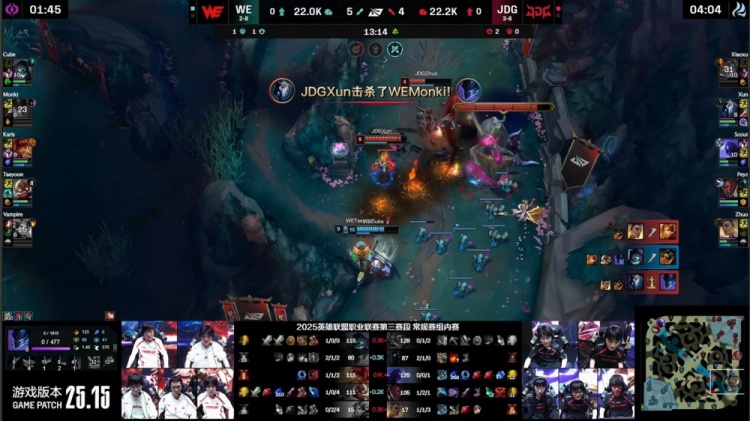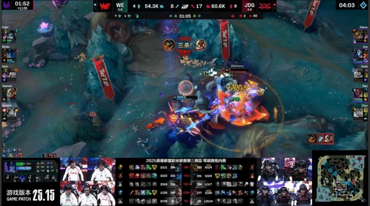 直播吧8月16日讯 2025LPL第三赛段常规赛组内赛继续进行,今日首场登峰组比赛由WE对阵JDG!