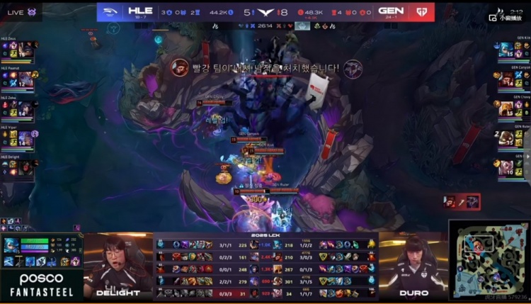 【26:14】野区遭遇,Delight牛头阵亡+Peanut波比被打残,GEN回头轻松拿下大龙!双方经济差已经超过6K!